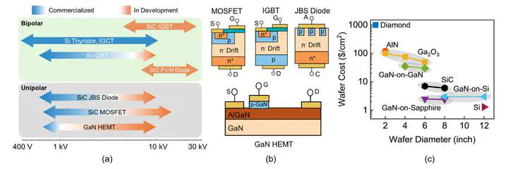 Power semiconductor devices, spanning blocking voltages from a few volts to tens of thousands of volts, are critical for efficient energy conversion in numerous applications and serve as key enablers of carbon neutrality. These devices can be realized in either vertical or lateral architectures, with the former preferred for high-power discrete devices and the latter offering high switching speeds and monolithic circuit integration. While lateral structures have long been utilized in low- and medium-voltage applications, recent advancements in multidimensional device architectures and (ultra-)wide-bandgap semiconductor materials have revitalized their potential for high-voltage applications. Multidimensional architectures, such as superjunction and multichannel designs, enable uniform electric field distribution for voltage scaling and, at the same time, boost carrier concentrations to enhance current capacity. The application of these architectures in gallium nitride and gallium oxide has led to the demonstration of multi-kilovolt lateral devices with diverse designs, achieving breakdown voltages exceeding 10 000 V, average electric fields up to 4.7 MV/cm, high-temperature operation up to 250 °C, and specific on-resistances at least 2–3 times lower than similarly rated vertical devices. Such advantages can be further enhanced through the implementation of monolithic bidirectional devices, a unique capability of the lateral architecture that enables the replacement of four vertical devices. This review provides an overview of multidimensional high-voltage lateral devices, emphasizing their fundamental device physics to inspire further applications across various material systems. The theoretical performance limits of multidimensional lateral devices are also analyzed. In addition, we discuss critical knowledge gaps that must be addressed for industrial adoption, highlighting emerging research opportunities in this rapidly evolving field.